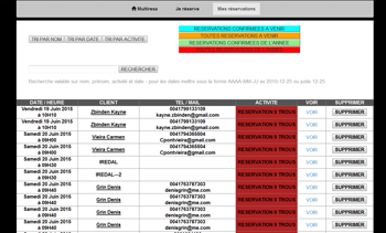 Consultation des réservations pour chaque activité avec effectifs et gestion de liste d’attente